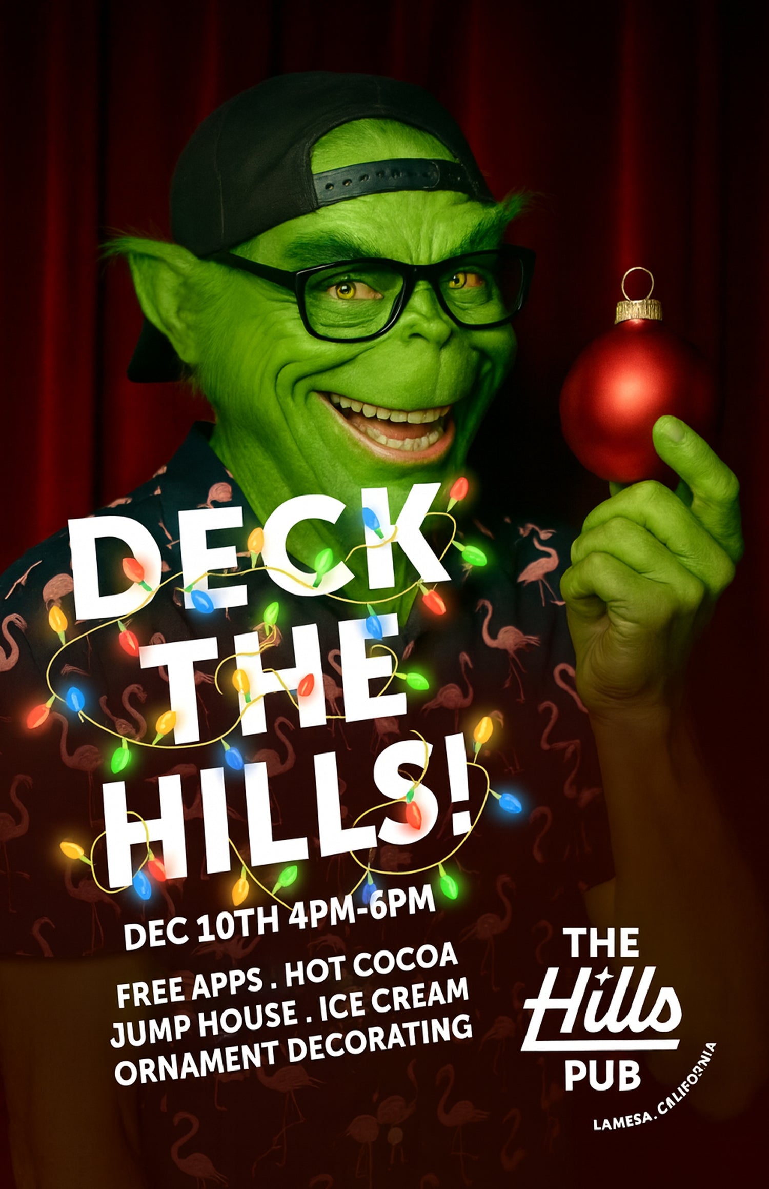 Free Appetizers - Hot Cocoa- Jump House for the kids - Ornament Decorating for the tree - Ice Cream - and a very special guest! Join us December 10th from 4-6pm!